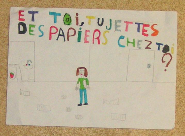 | Les 9 affiches sélectionnées par le Conseil des Enfants seront collées aux endroits concernés : poubelles, entrées, toilettes. |